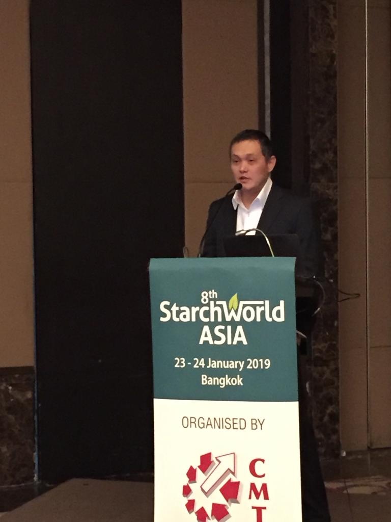 Ông Michael Yoong – Phó Tổng Giám Đốc đại diện công ty Hùng Duy vinh dự là đơn vị nhà máy sản xuất tinh bột Sắn (Khoai Mì) duy nhất tại Việt Nam tham dự hội thảo và được mời diễn thuyết về tình hình chung, thực trạng ngành Sắn (Khoai Mì) của Việt Nam trong năm 2018.