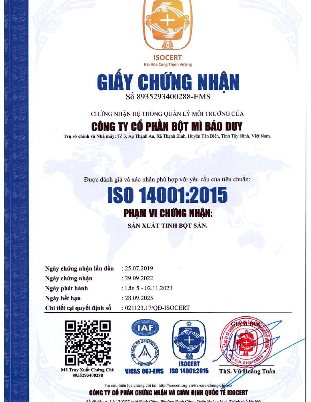 NHÀ MÁY 4: BẢO DUY - SẢN XUẤT TINH BỘT MÌ